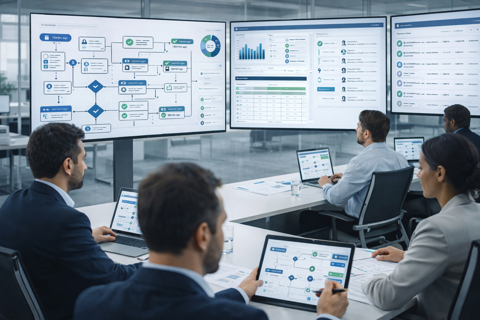 Para las instituciones financieras y corporaciones con redes de sucursales, filiales y oficinas remotas, la operación diaria se ha vuelto más compleja que nunca. Los flujos ya no se ejecutan en papel, pero siguen siendo altamente manuales: aprobaciones por correo, carpetas compartidas, criterios distintos según la sucursal y pasos críticos que dependen de que cada responsable “revise y confirme”.